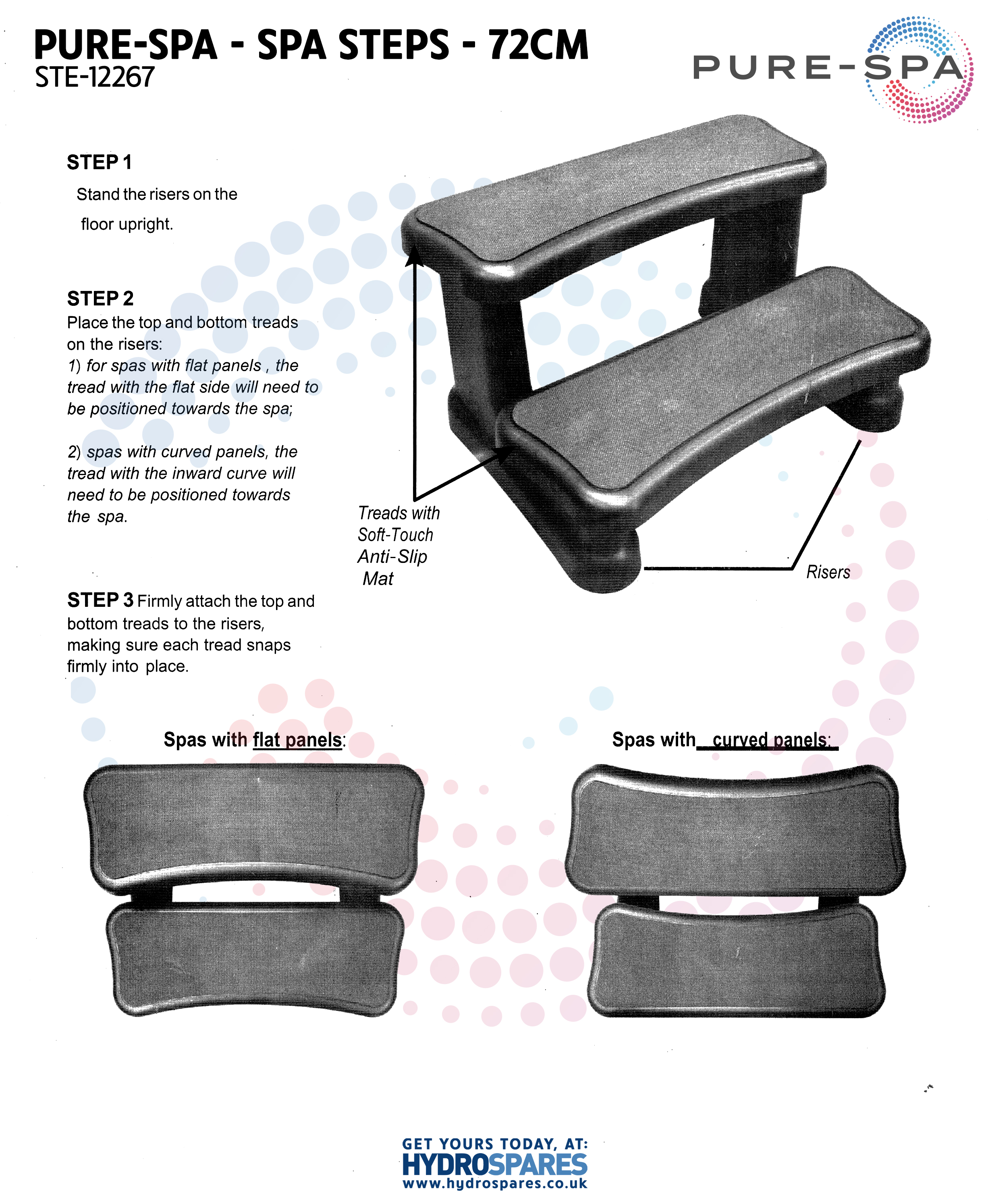 The textured surface offers extra grip underfoot, while the two-step height makes access easier and safer. Ideal for both home spas and holiday lets.