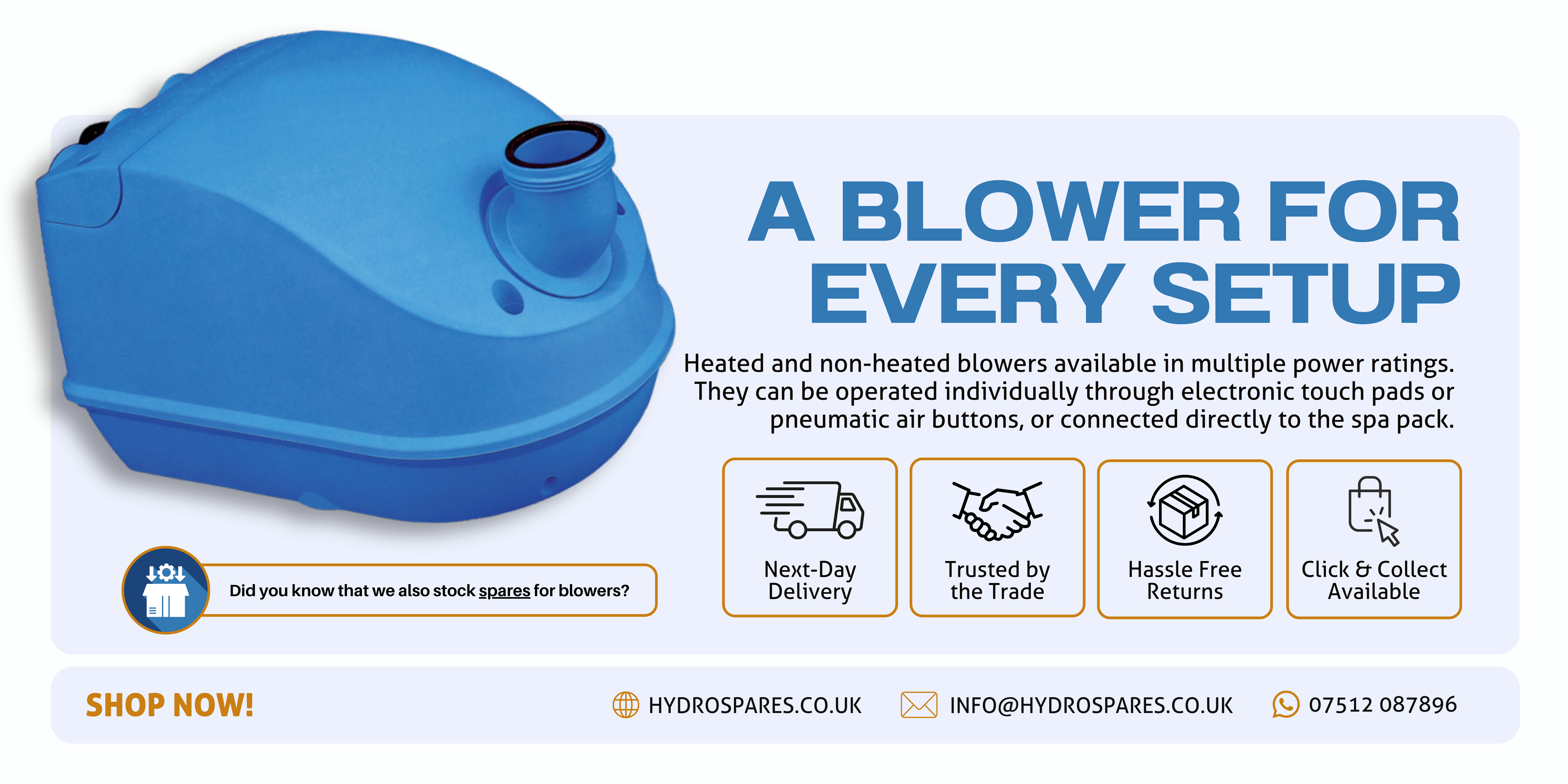 Blowers used in these types of systems can vary slightly, the main things you would need to consider when either building a system or replacing a blower is the Motor Size, this has to be specified correctley to make sure the air flow distribution of the system is just right in order to be able to move air through the volume of water present in the tub. If a blower is over sized it can greatly decrease the life of the blower and put undue stress on the plumbing.
