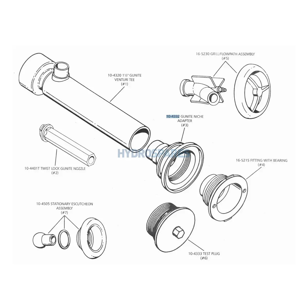 This wall fitting is designed for concrete spas and includes an air intake for Venturi suction. It is usually used with an Eyeball jet, although different configurations are entirely possible.